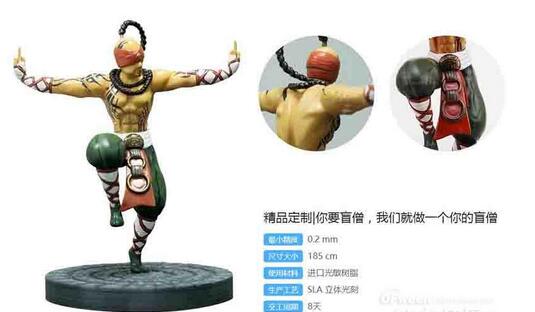 使用SLA光固化3D打印技術來制作動漫、游戲、電影角色手板是絕佳的選擇,對于《英雄聯盟》的忠實玩家,可以擁有一個盲僧的人物角色是十分令人期待的。這是由魔猴網使用SLA光固化3D打印機所打印出的盲僧手板,打印出的白模再配合上色師傅的高超手藝,即可讓它栩栩如生,而且可以根據用戶的需求來定制化打印。