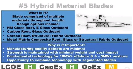 運用混合材料的基本理念是在風(fēng)力渦輪片的不同受力點的地方采用不同質(zhì)量和密度的材料,這樣可以減少風(fēng)力渦輪片的總重量,同時加固風(fēng)力渦輪片的整體結(jié)構(gòu)。現(xiàn)有的案例包括運用高模量玻璃或是碳纖維來制造渦輪片的網(wǎng)狀結(jié)構(gòu)和根部——這些地方的受力更多,同時用一般的玻璃來生產(chǎn)外部結(jié)構(gòu)。這樣一來可以節(jié)省成本,優(yōu)化現(xiàn)有的基礎(chǔ)設(shè)施,充分利用創(chuàng)新科技。